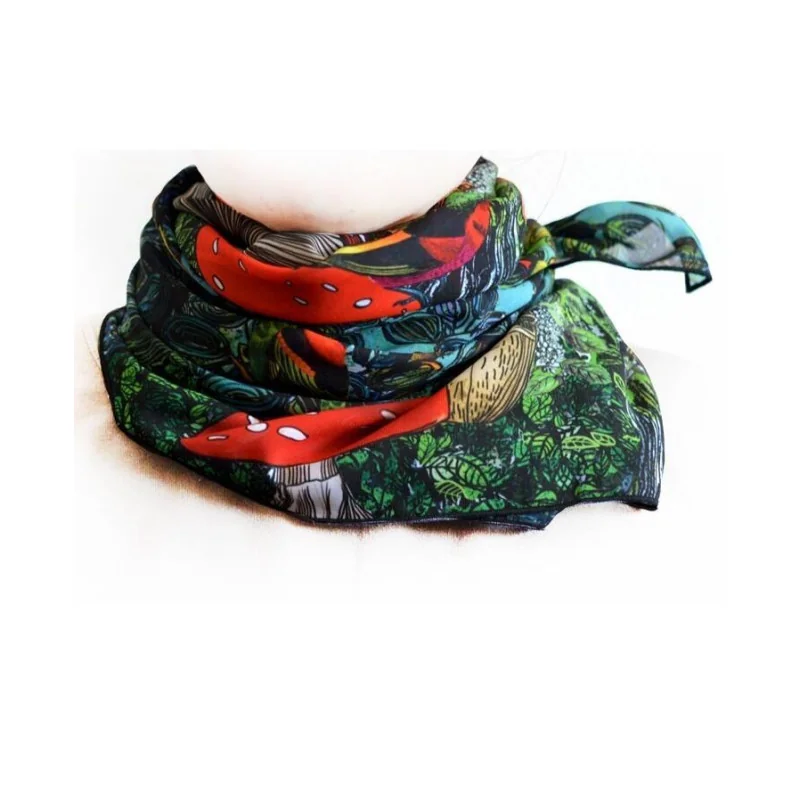Marieantoilette a imprimé ce joli carré en coton , on y voit des oiseaux des champignons
