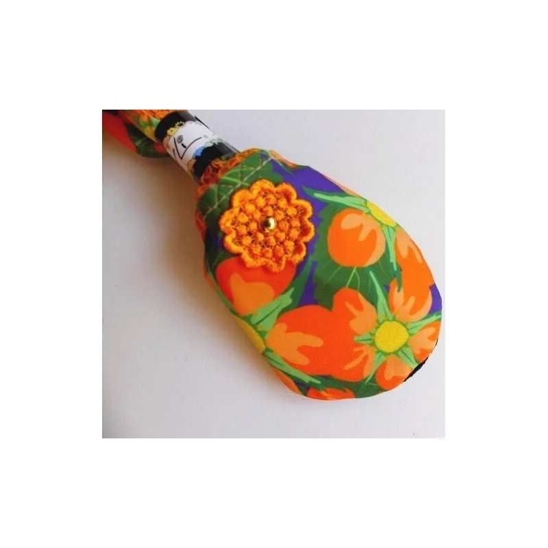 Chausson de voyage en tissu souple imprimé d’un bouquet de fleurs du jardin originale bleu orange et rose.