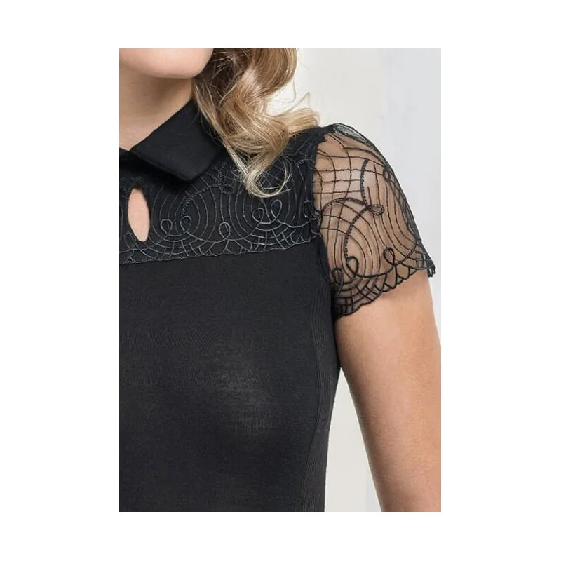 Manche courte cette superbe chemisette en laine et soie est une création de Moretta aussi jolies que fonctionnel, les fines laine et soie de Moretta sont chics et élégantes, exactement le genre de petit dessous pour être bien au chaud