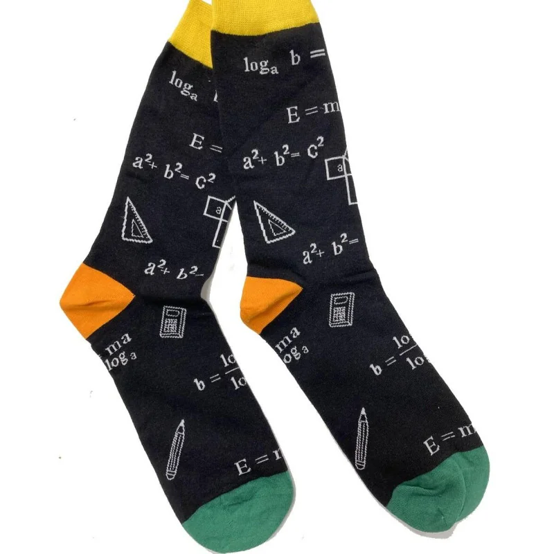 Jolies chaussettes originales en coton études de mathématiques chimie ¨Physiques et lecture, on dirait un programme du BAC ces chaussettes originales