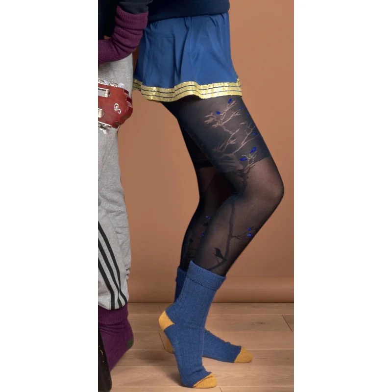 Collant noir fantaisie Berthe aux grands Pieds à subtils motifs bleus