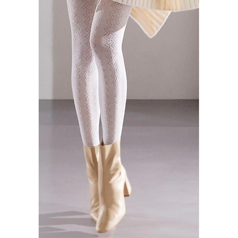 Collant chauds à motifs géométriques naturel, collant en modal et cachemire LE Borget, collant d’hiver fantaisie avec un tricotage fantaisie, collant d’hiver effet dévoré et torsadé, joli collant d’hiver Torsadé en laine cachemire et modal