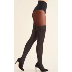 Collant mode et tendance pour de l’élégance ou quotidien en collant noir opaque avec un joli motif subtil et ajouré.