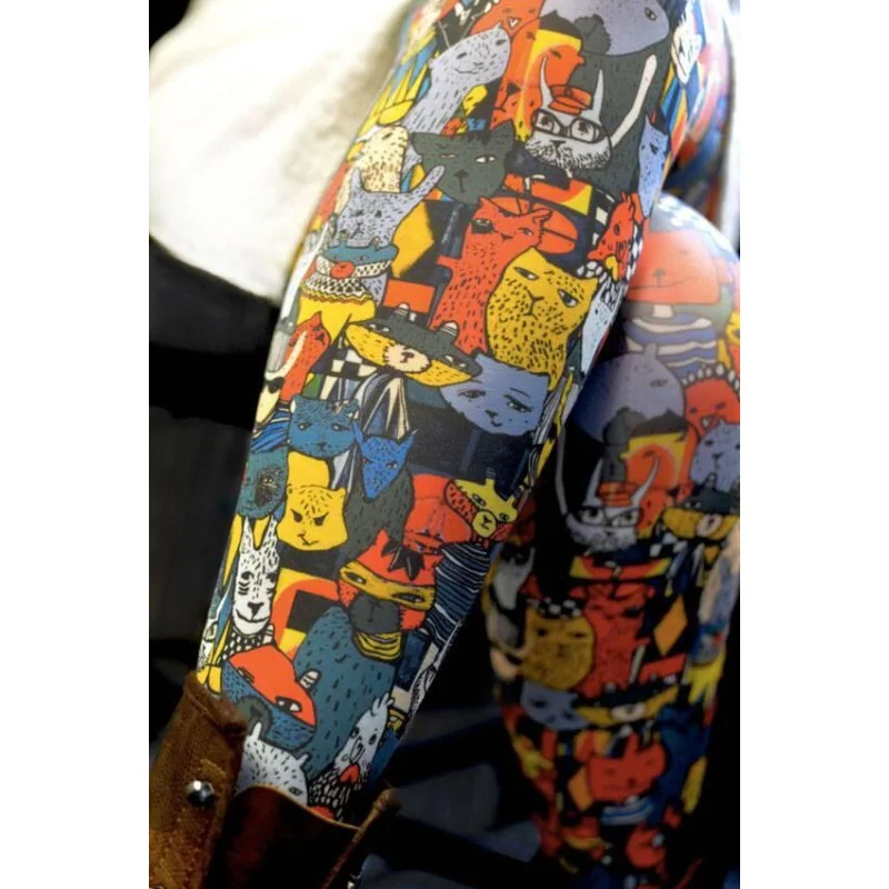 Une création de Marieantoilette qui illustre que décidément la créatrice aime bien les chats, à regarder de plus près y en a plein et ils sont de tous polis, intellos, charmeurs, blagueurs, mauvais garçon,… Bref des vrais chats quoi, et çà c’est une création de Marieantoilette pour les jambes.