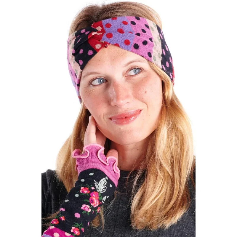Un enseble Mitaines Et Bandeau Pois fleuri Dub et Drino