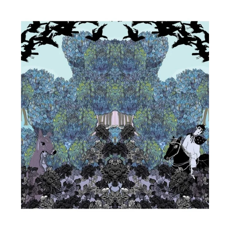 Marieantoilette fabrique de très joli foulard, imprimé sur une mousseline de satin ce carré de 90X 90 cm reprend le thème Peau D’ane interprété par la créatrice.
