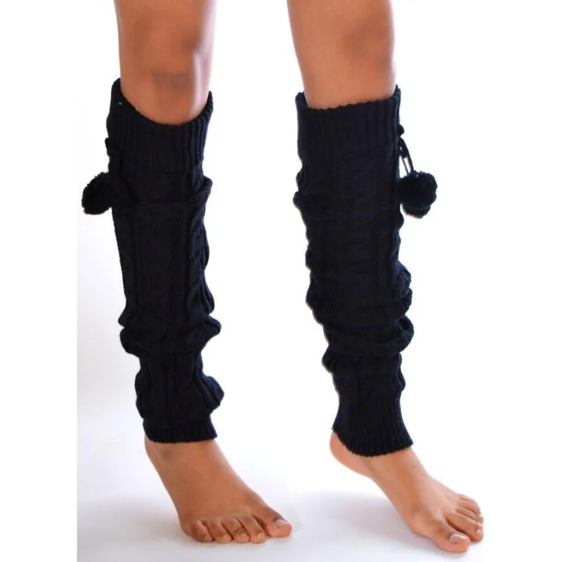 Longues chic et pom-pom on apprécie ces drôles de longues chaussettes sans pieds pieds torsadé.