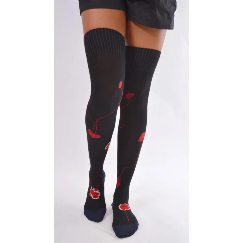 Chaussettes en coton peigné avec joli motifs de fleurs de coquelicots à veloutes élégantes.