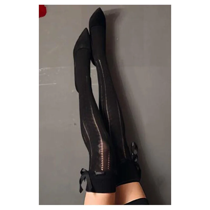 Chaussettes Hautes Torsades et laçage noir Cronert