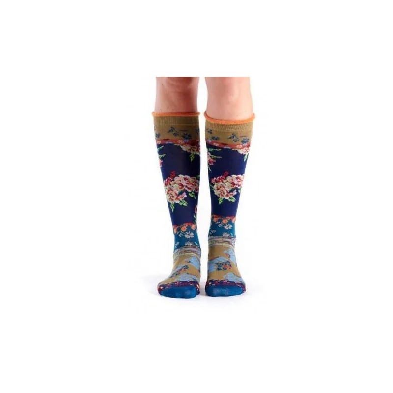 Jolies chaussettes à fleurs tendance chics et fantaisie , une création Française de Desmaziére qui décline ces dessins originaux en bandeau gants mitaines collants et chaussettes pour le plaisir de celles qi aiment les jolis motifs fleuris et originaux.