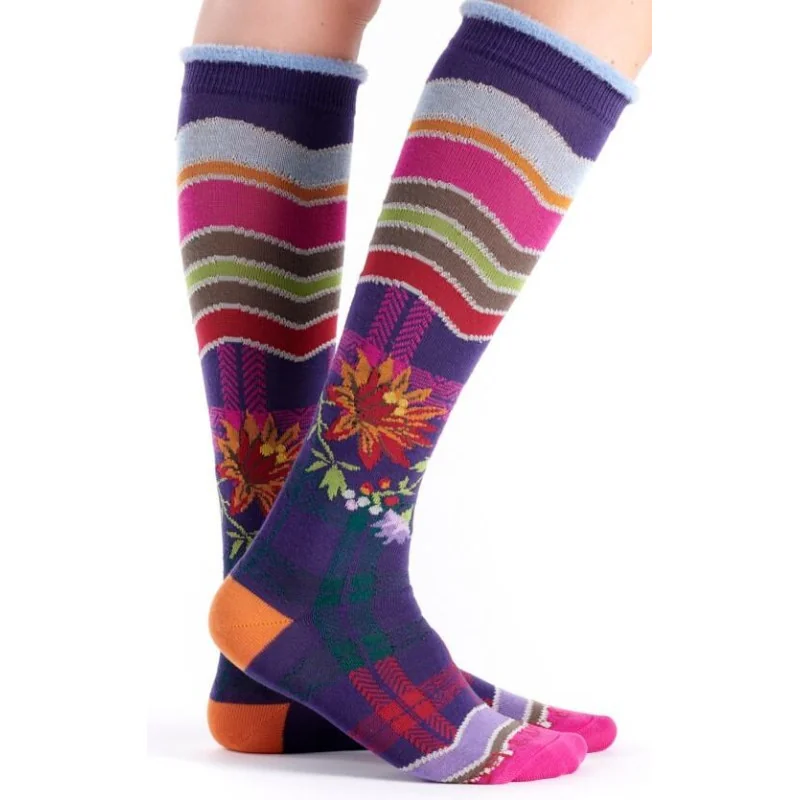 Jolies chaussettes hautes en coton Dub et Drino Carreaux Et Fleurs Originaux
