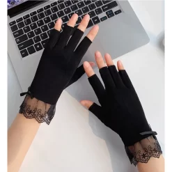 Mitaines élégantes et sophistiquées coton anti glisse et dentelle