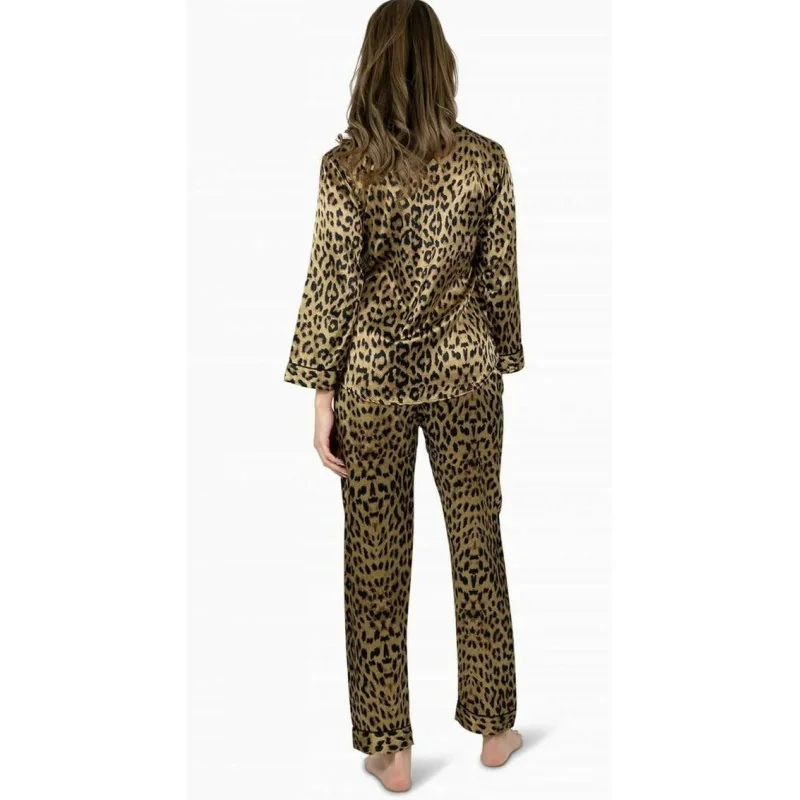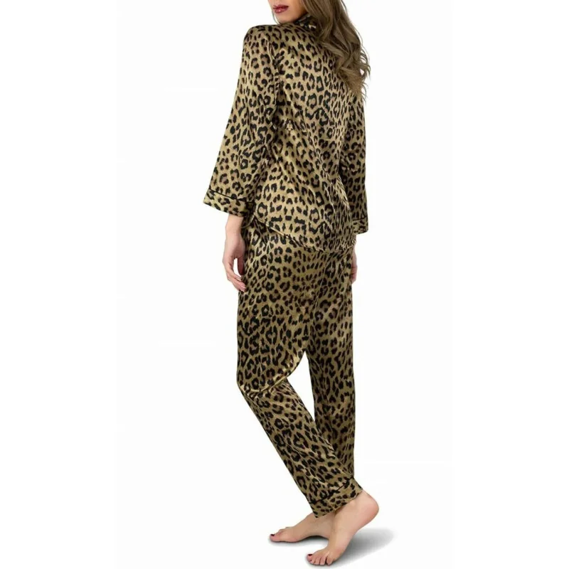 Tenue de nuit élégante soyeuse en satin imprimé Léopard