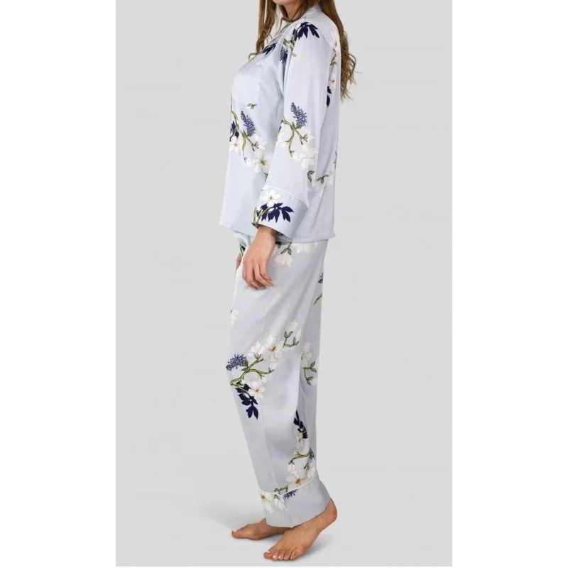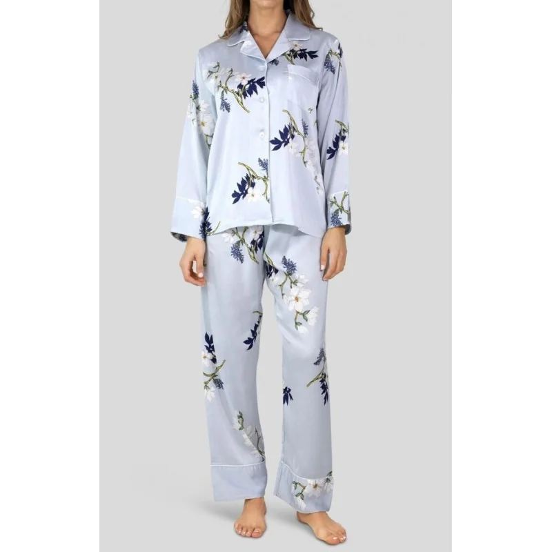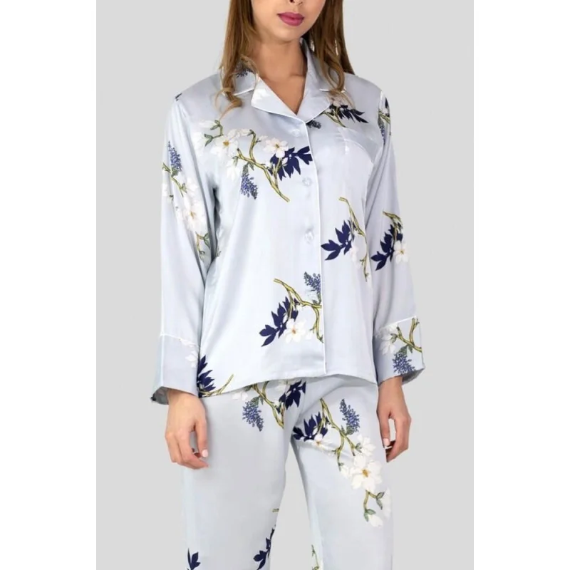 Tout confort dans ce pyjama chic, léger en satin fluide et soyeux. HN a soigné la coupe haut boutonné façon chemisier et pantalon souple .