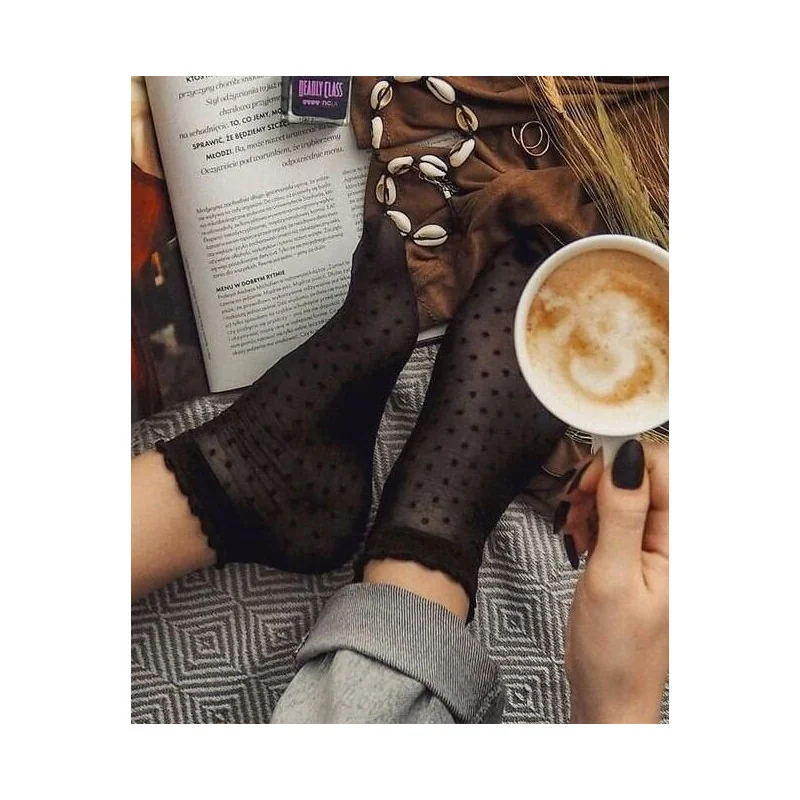 Ces chaussettes en voile souples sont transparentes à petits pois très élégants